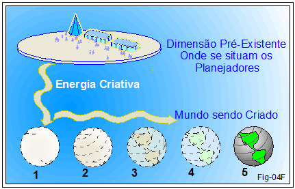Não foram criados de um estalo: Todos tiveram suas fases de planejamento, formação molecular desde a mais rarefeita forma de energia e passando por sucessivas transformações e estados de solidificação, chegaram ao estado atual. Figura 04F.