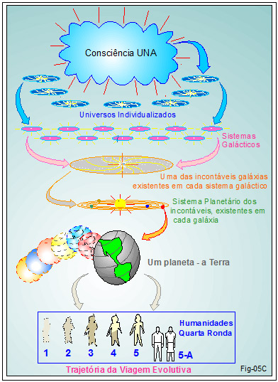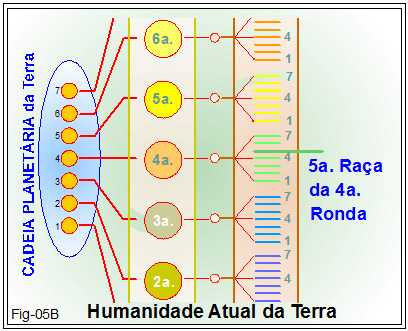 12 – Como indicado na figura 05B, a humanidade da Terra, a atual, se encontra na 5ª raça da 4ª Ronda;
