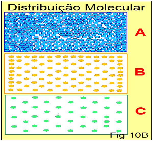 A figura 10B apresenta três quadros: A – B – C – cada um mostrando uma diferente densidade molecular.