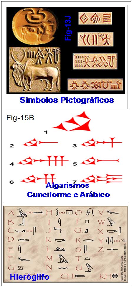 Quanto a isso devemos compreender que a escrita, seja esta executada, ou composta nas formas variadas que conhecemos desde a mais remota antiguidade, seja a pictográfica, a cuneifórmica, a hieroglífica e as mais tardias formadas por caracteres como os conhecemos, todas elas são muito recentes, considerando-se o tempo de existência da Terra. Figura 15B.
