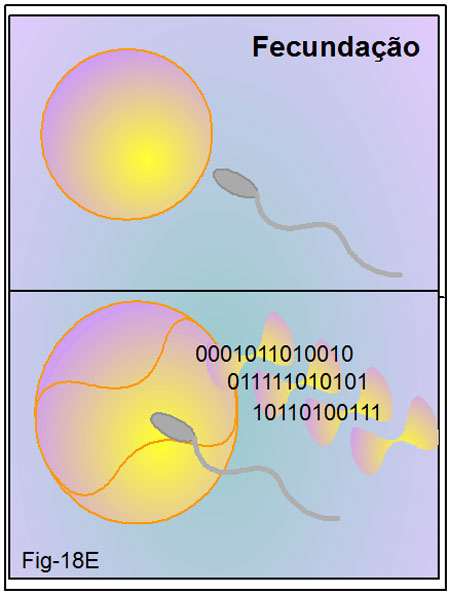 Figura 18E – O processo VIDA não é a fria multiplicação celular ditada pelo código genético – DNA – numa espontaneidade repetitiva como se fosse tão só o gélido código binário dos programas de computadores.