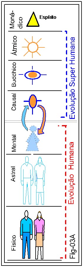 Cabe, entretanto, outra informação: o Ser Integral é composto por vários elementos como podem ser vistos na figura 03A: Corpo Físico, Corpo Astral ou Perispírito, Corpo Mental, Búdico e Átmico. Neste estudo só estamos fazendo referência ao Corpo Astral.