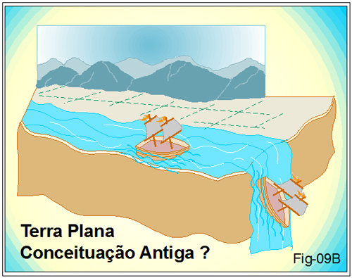Possivelmente, todos se lembram dos livros escolares de história que ensinam que os povos antigos “pensavam” que a Terra era plana e que se navegassem até seus limites cairiam num insondável abismo. Figura 09B. Lembram-se ?
