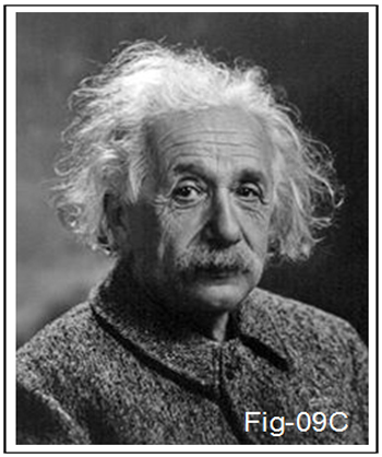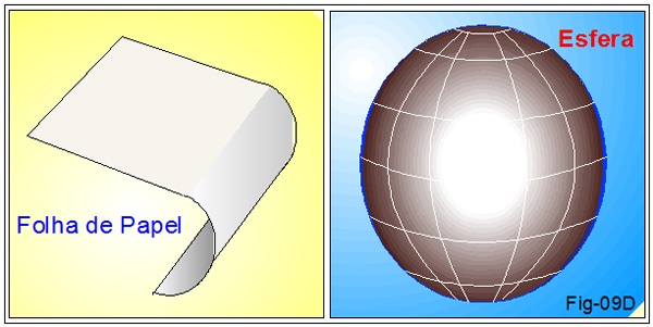 De cálculo em cálculo, aos montões, conceituou a teoria geral da relatividade da qual derivou a conceituação de que o espaço é curvo. De curvatura em curvatura vai fechando-se em si, mas não como a forma de uma folha de papel enrolado e sim numa curvatura esférica. Figura 09D.