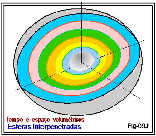 Apesar das duas figuras 09i e 09J, reconhecemos que ainda assim é difícil conceituar, imaginativamente, as esferas interpenetradas umas com as outras, bem como todas ocupando o mesmo volume.
