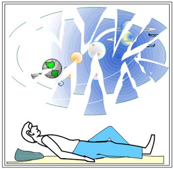 Não há mais limites e assim se deixa ficar, flutuando... flutuando... expandido em todo seu ser, até que seu corpo, incomodado pela longa exposição em uma só posição, quebra-lhe a concentração.