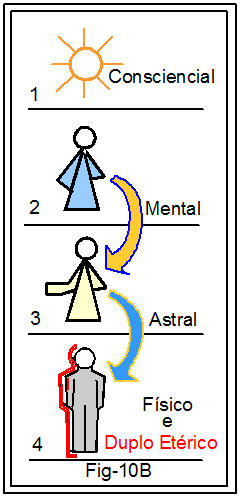 4 – Plano Físico, onde estamos nesta atual existência como seres encarnados.  Neste plano o espírito faz uso do corpo denominado de humano, também chamado de soma, ou corpo das ações.  Acoplado ao corpo humano e fazendo parte deste, temos o corpo por nome Duplo-Etérico.  Esse nome deriva do fato de esse invólucro ser a cópia fiel, em matéria rarefeita, ou energética, do corpo humano.