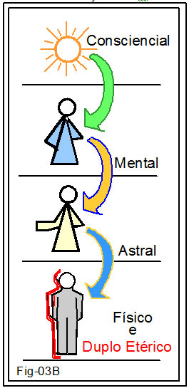 Esse elo tomou o nome de pensamento. Na figura 03B está representado por setas passando de um plano a outro.