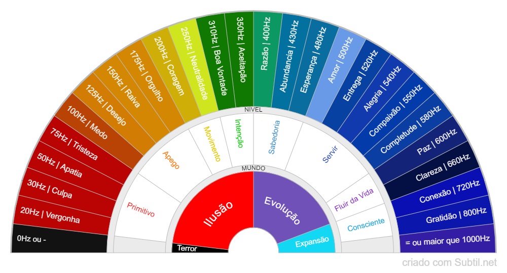 Ela busca mensurar a o nível mental de acordo com os sentimentos que temos, sendo que o mais baixo seria a vergonha e o mais alto seria a iluminação.