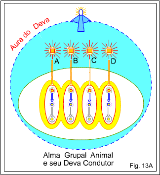 Na figura 13A demonstramos o que possa ser compreendido como uma Alma Grupal Animal. Observem que o invólucro grupal, a "casca do ovo", agora só possui uma camada.