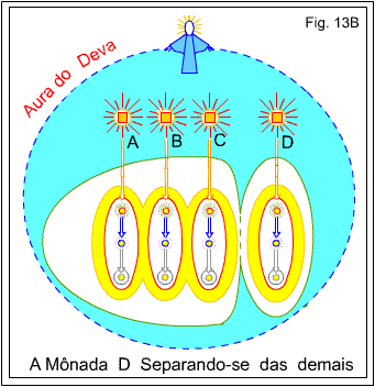 Além disso, aquelas mesmas Mônadas antes encerradas na alma-Grupal que as animava, continuam, por mais algum tempo, sob o controle da mesma direção Dévica. Isto é, envoltas pela aura do Deva que as vem dirigindo desde tempos remotos.
