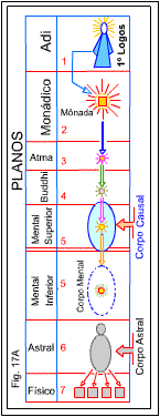 Todavia, como a figura mostra, seu corpo Astral, neste mesmo tempo, possui contorno definidos, o que permite à Mônada expressar-se com relativa liberdade naquele plano. E´ ele, o corpo Astral, que dá condições aos Elementais de participarem de atividades várias, principalmente as ligadas aos fenômenos transformativos que operam na Natureza.