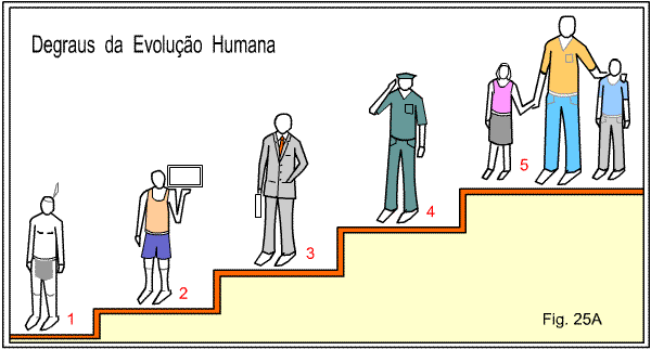 Nesses cinco degraus ficam, neste nosso trabalho, representadas as categorias da sociedade humana que mais chamam a atenção. As categorias escolhidas nos parecem suficientes para tornar visíveis os recursos que o Governo Maior de nosso Sistema Planetário se utiliza para impulsionar a Criatura terrestre em sua senda de progresso, bem como para a correção dos transviamentos de rumos.