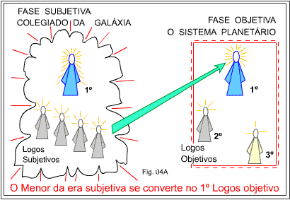 A figura , 04A, conta que um dos elementos menores, integrante do Colegiado da Galáxia, daquela fase subjetiva, se torna o Maior na fase objetiva. Ele se converte no nosso 1º Logos. Ele é o que chamamos de Criador Transformador de nosso sistema planetário.