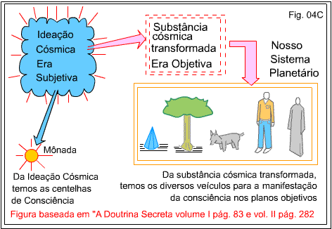 Também, da mesma Ideação Cósmica, descreve a figura, vem o transformismo que se transmutou neste todo planetário-solar que nos serve de morada. E destas substâncias que aqui se formaram pela transformação executada pelo 3º Logos, advieram todas as formas que vemos, tocamos e usamos.