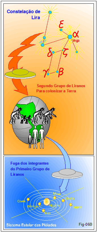 Figura 06B – Vinda do segundo grupo de liranos, a reativação dos conflitos e a fuga do primeiro grupo para o sistema estelar das Plêiades.