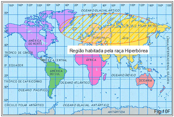 Repetimos aqui que a figura 10F é apenas demonstrativa do posicionamento onde habitavam os hiperbóreos. O globo ainda não tinha a conformação geológica e geográfica dos nossos tempos.