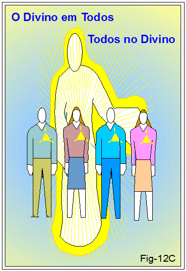 Este brilhantismo se fundamentava no conceito de que a Divindade habitava entre os Homens. Ou seja, ensinavam e praticavam este conceito de que o Animador do corpo físico é um Ente Divino. De que o ser físico é possuídor de parcela Divina, e que esta é a que o anima. A imperecível. Que se é espírito vivendo em corpo físico, razão da importância maior de se ser espiritualizado. Que o próximo é – identicamente – semelhante a si. Figura 12C.