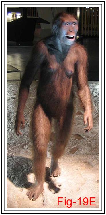 (A figura 19E mostra fotografia de uma escultura de australopitecos fêmea.)