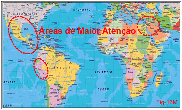 Contudo, as atenções dos pesquisadores se enfocam mais às regiões do oriente médio, América Central e Peru. Figura 13L. Isto é, região da Mesopotâmia que engloba o atual Iraque, estendendo-se até o Egito e, do outro lado do Atlântico, à América Central cujos sítios arqueológicos revelam as civilizações Astecas, Toltecas, Maias e, mais ao sul, o Peru com a civilização Inca. Figura 13M