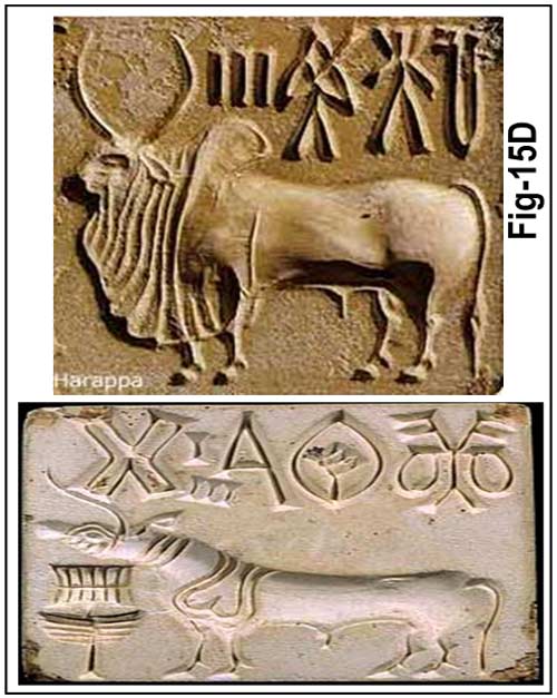 Neste parágrafo acima demos destaque ao trecho “touro como sua marca” porque nos achados arqueológicos de Harappa e Mohenjo Daro foram encontradas tablitas de argila com representações desse animal, como se vê na figura abaixo. Figura 15D.