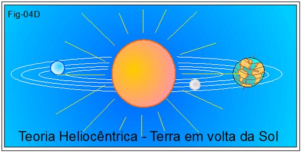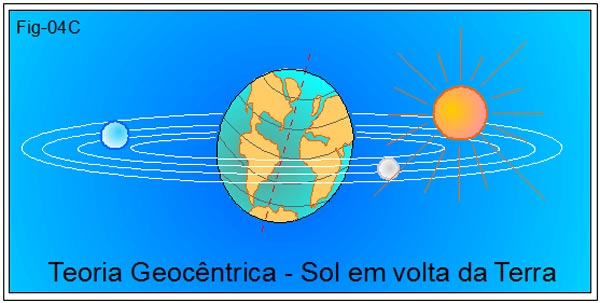 E´ bem verdade que durante muitos séculos o domínio científico afirmava que a Terra era o centro do sistema planetário. Que o Sol girava em torno da Terra. Era a teoria geocêntrica. Algo como dizer: a Terra é o centro do universo. Figura 04A. Tudo gira em trono dela. E o homem da Terra o Ser máximo de toda a criação. Figura 04C.