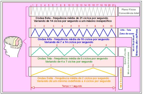 É neste padrão vibratório que se insere o processo de meditação. O indivíduo não está nem totalmente consciente e nem totalmente inconsciente. Encontra-se em fase intermediária a estes dois estados: consciente e inconsciente.