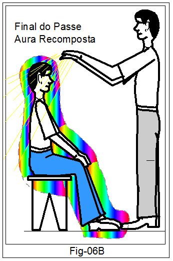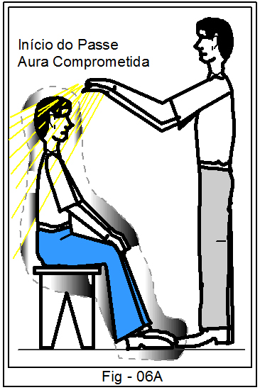 No início do passe a pessoa a ser atendida tem sua aura impregnada de energias nocivas. (Figura ao lado, 06A)
