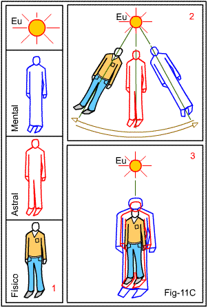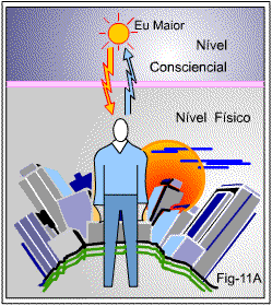 Na figura 11A ilustramos esse acontecimento, mostrando que devido aos traumas, entre os dois níveis existenciais, como que se forma uma linha divisória que impede à personalidade “enxergar” e entender os sinais que lhe chegam do Eu Maior. Para ela só existe o mundo físico.