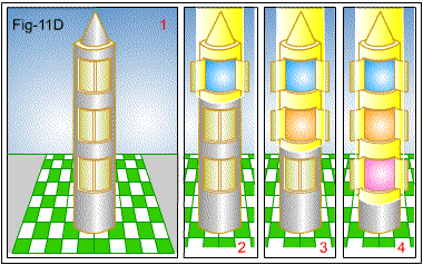 Quadros 2 – 3 – 4 – Visão da mesma torre, sob o influxo descendente de energia.