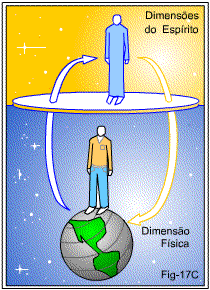Com a figura 17C estamos mostrando, em síntese, as dimensões vivenciais. Temos a dimensão Física, também chamada de terceira dimensão, e as dimensões do Espírito, por sua vez distinguidas como quarta, quinta, etc, dimensões. Entretanto, todas dentro de um só sistema e criadas para um só fim, que é a evolução do Ser. Desta forma compreende-se que todas são de igual importância ao fim para o qual foram criadas. A diferenciação está apenas na ambiência de vida, pois cada dimensão possui sua característica própria, mas não no que se poderia pensar em termos de qualidade de uma em relação à outra.