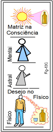 Esse comando matricial da mente é o resultado da chamada idéia fixa, ou monoideísmo, que foi visto na apostila 09.   A figura 13C, portanto, descreve que no centro consciencial fica vívida a imagem, ideoplastia, daquilo que ela agora pensa.