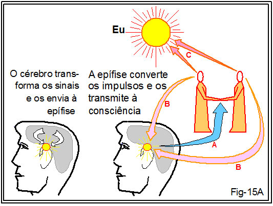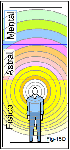 Na figura 15C, com a zona sombreada representamos a região psíquica do Ser responsável pelo contato interplanos.  É a região compreendida pelos corpos Astral e Mental.