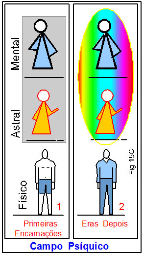 Entretanto, como expomos na série A Criatura, em suas primeiras encarnações como ser humano, o indivíduo tem seu corpo Astral ainda pastoso.  Muito denso e pouco ágil, como vemos no quadro 1 da figura.