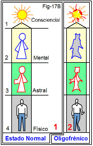 Quadro 1, da figura, temos o que se possa chamar de Estado de Normalidade.  No quadro 2, a representação das degenerações pertinentes ao caso.  Sendo assim, e como o corpo Astral é o molde para o corpo Físico, significa que em encarnação vindoura esse indivíduo padecerá de existência humana num corpo deficiente.