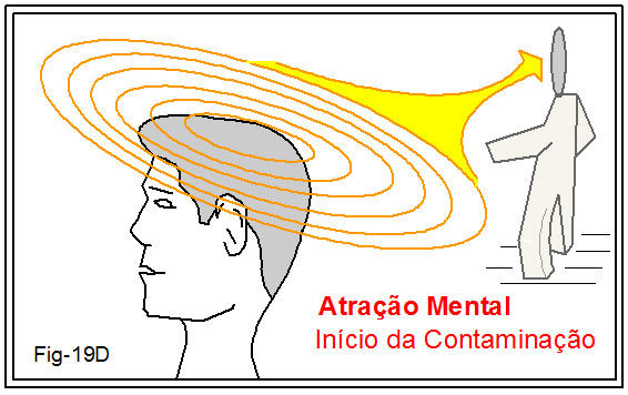 Como segundo ato do acontecimento, figura 19E, o espírito atraído se volta, buscando a fonte de origem daquele pensamento. Localiza-a, aproxima-se, e passa a conviver nas proximidades.