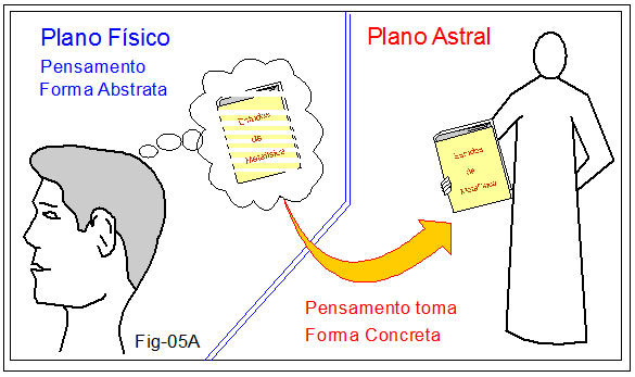 No plano Físico a pessoa pensa, lembrando-se de um livro. Neste plano seu pensamento é abstrato, por isso intangível. No plano Astral, porém, o mesmo pensamento se tornou objetivo e tangível. Além de imagem pode também ser tocado. Isso significa que a imagem tem durabilidade e consistência.