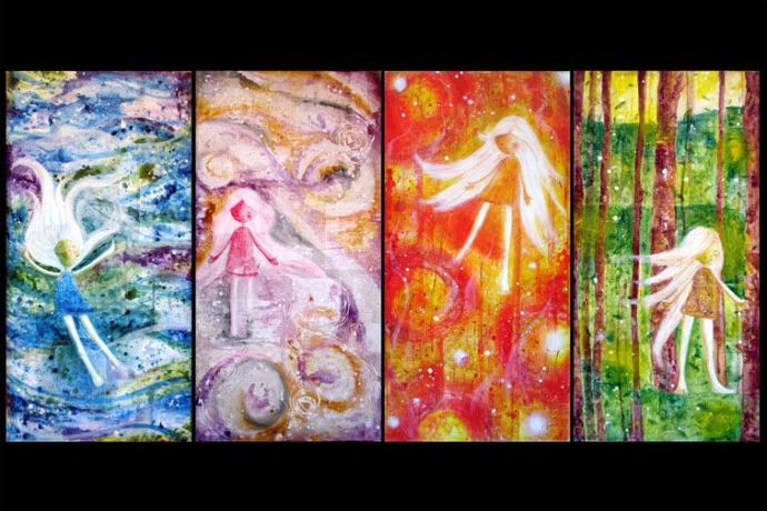 Note-se que, embora tenham como função cuidar das flores e dos frutos, ligados à terra, elas se apresentam com asas.